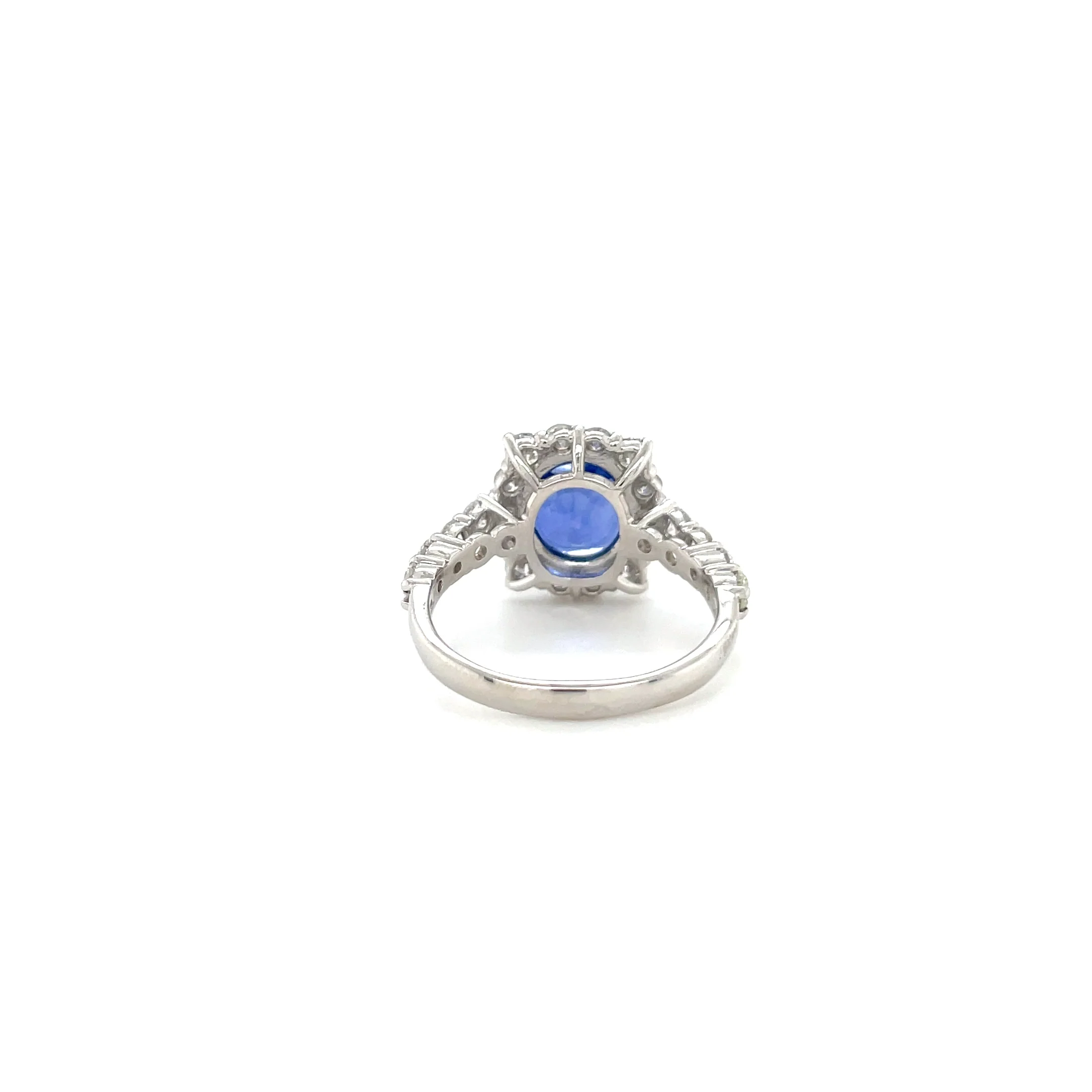 This exquisite ring features a 2.97 carat natural no-heat sapphire, complemented by 1.07 carats of sparkling diamonds set in elegant platinum. Certified by AIGS, it combines exceptional quality with timeless sophistication, making it a distinguished choice for those who appreciate refined luxury.