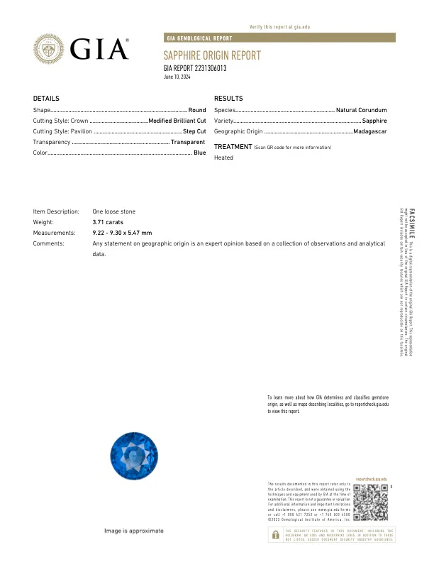 This 3.71 carat natural blue heated sapphire is a stunning gemstone certified by GIA. With its striking blue hue, this sapphire is sure to add a touch of elegance to any piece of jewelry. A perfect choice for those seeking a rare and valuable gemstone.